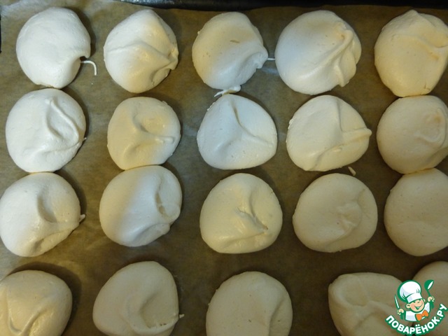 и лучше делать на пергаменте не смазывая маслом, один из способов проверить готовность пошевелить безешку, она легко отстаёт