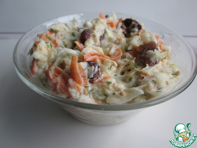 Мои впечатления о салате самые замечательные! Изюм очень гармонично вливается в общий вкус и "уравновешивается" уксусом в заправке! Такому салату можно дать второе название "За уши не оттянешь"!