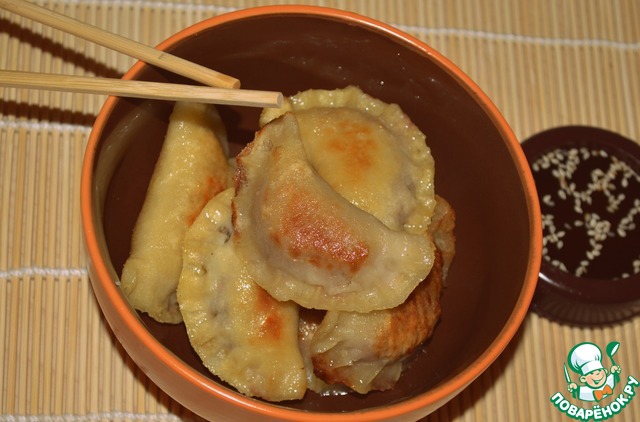 Процесс понравился и оставил массу впечатлений. Тесто эластичное, подвластное, а ведь такое простое. Фарш ароматный и очень сочный. В морозилке продержала часов пять, не больше. И несколько штучек разогрела для пробы. Результат превзошёл ожидания! Вкус потрясающий! Тесто нежное, тонкое. А в сочетании с кунжутным соусом - просто слов нет! Так и скажу, что песня!