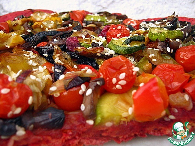 Пицца из свекольного теста с овощами и грибами от Храмовой Жанны