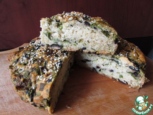 "Кипрский пирог с маслинами и зеленью" по рецепту maraki84 https://www.povarenok.ru/recipes/show/112271/ - Потрясающе-вкусный пирог!Съедается моментально!Остальные комментарии излишни -его надо обязательно печь!Для себя в блокнотике пометила вес нарезанной зелени,а то неудобно измерять стаканами-примерно 35-40 г.А маслин ушла целая баночка,что тоже хорошо!