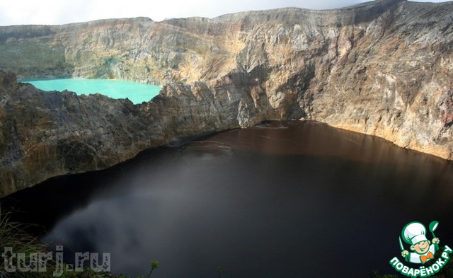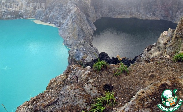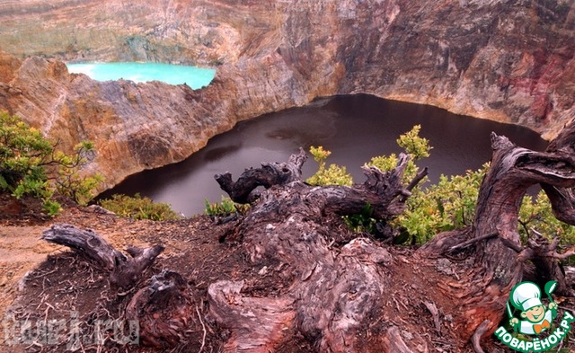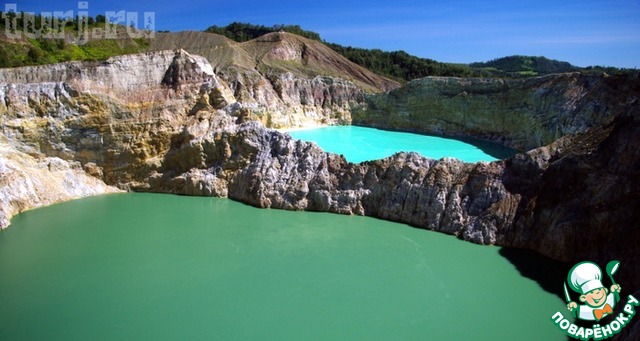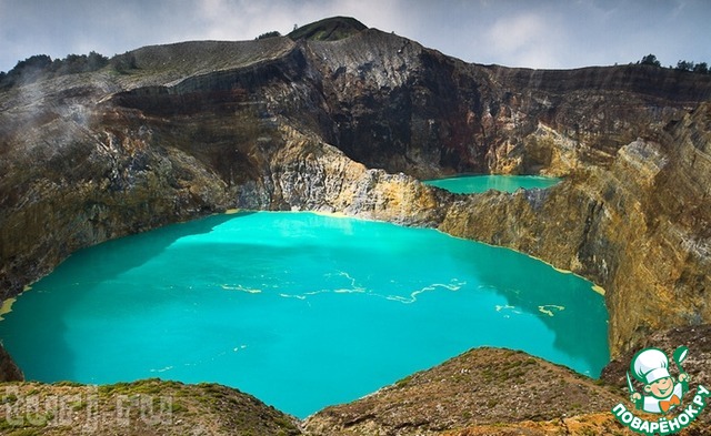 Три озера, расположившиеся в кратерах вулкана, находятся всего лишь в нескольких метрах друг от друга.