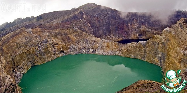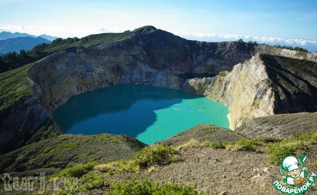 Ученые же объясняют эту красоту по-своему. Щитовидный вулкан сформировался, когда раскаленная лава, вылившаяся из его жерла, растеклась по большой территории. Там, где вершина вулкана провалилась, появились кальдеры – циркообразные впадины. В них-то и образовались цветные озера. А цвет воды в озерах зависит от минерального состава донных пород.