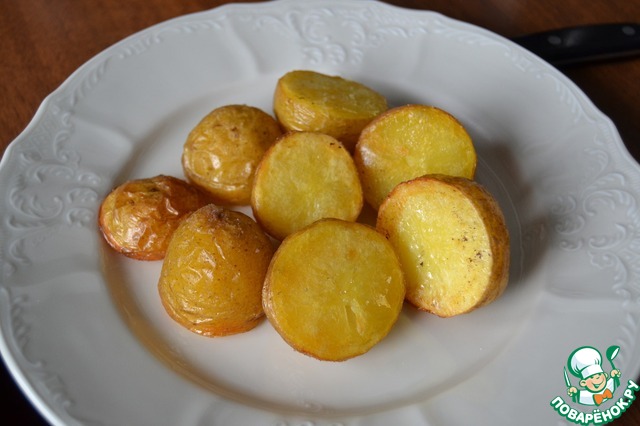 масло.Выкладываем картошку разрезом на противень.Это очень важно!