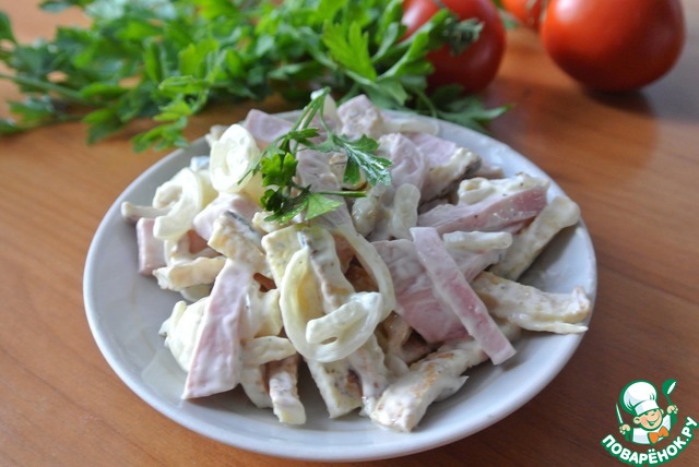 Не думала, что этот салат меня удивит. А он и удивил. Не в моем вкусе салаты с сухариками. А здесь прекрасная им замена - яичный блинчик с ароматом сухариков, но в отличие от сухарей нежной консистенции. Вкусно!