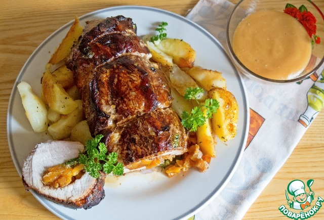 А сегодня, у нас на обед - "Свинина, запечённая с курагой и картофелем" по дебютному рецепту Машеньки!!