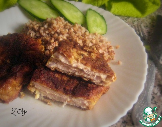 «Базельский шницель "Кордон блю" по-русски» по рецепту https://www.povarenok.ru/recipes/show/114494/ Ирочки iren0511! Вкусно получилось! Присутствие карри и куркумы в панировке мне очень понравилось! Буду использовать такую панировку в дальнейшем!