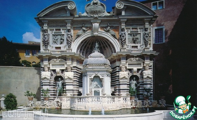 Семь холмов Рима, древний Пантеон и Колизей символизирует другой фонтан – Рометта, расположенный подле гротов Венеры и Дианы.