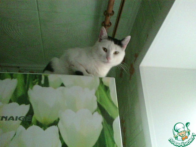 Фото когда "застукала "Ваську на холодильнике уже добавляла https://www.povarenok.ru/blog/show/44772/, теперь это его любимое место около окошка, после ремонта (шторы "в процессе шитья") холодильник переставили на другое место.