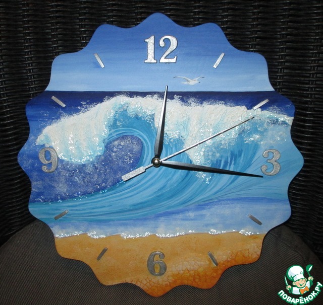 Эти часики мне заказала одна чудесная девушка на тему "ВОДА".Воду ,в данном случае,я увидела именно в таком виде.И с удовольствием их сделала.Сегодня испросила разрешения у заказчицы,что бы показать часики на нашем Поварёнке))Мне дали добро!(говорю же-чудесная девушка эта самая заказчица)