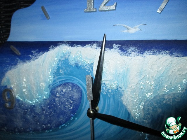 Эти часики мне заказала одна чудесная девушка на тему "ВОДА".Воду ,в данном случае,я увидела именно в таком виде.И с удовольствием их сделала.Сегодня испросила разрешения у заказчицы,что бы показать часики на нашем Поварёнке))Мне дали добро!(говорю же-чудесная девушка эта самая заказчица)