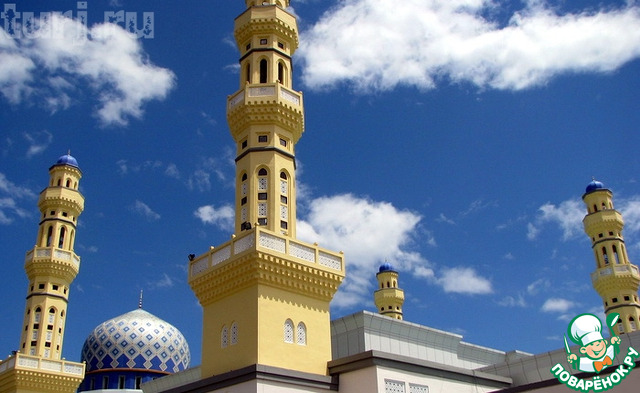 Внешне белоснежная прямоугольная мечеть с четырьмя минаретами и сине-желтыми маковками куполов производит незабываемое впечатление.