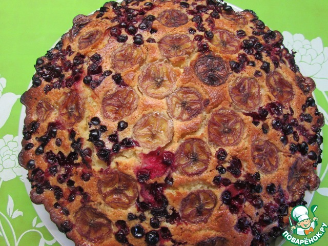 Испекла пирог и осталась довольна. Получился высокий, большой и вкусный. Использовала банан и бруснику. В следующий раз положу ягоды побольше и поэкспериментирую еще с какой-нибудь.