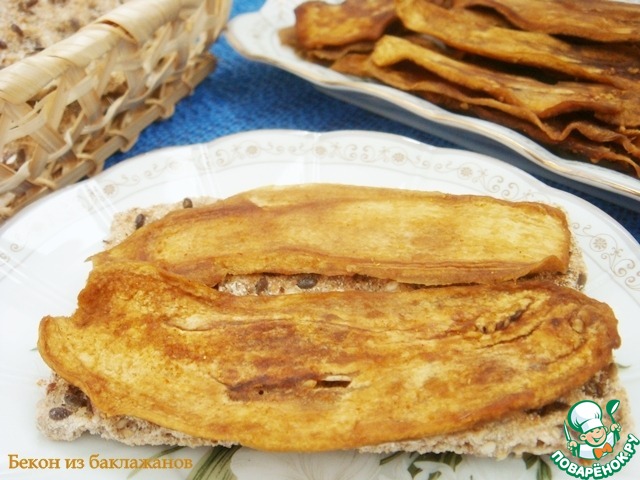 Бекон из баклажанов по рецепту Наташеньки гурман1410 - очень вкусные,пряные,с легкой,приятной сладинкой ломтики!Часть нарезала овощерезкой совсем тоненько,часть ножом, чуть потолще. Понравились и посуше,и "пожирнее".Оторваться невозможно!С хлебушком или хлебцами,правда,и не угадаешь,что это баклажаны.