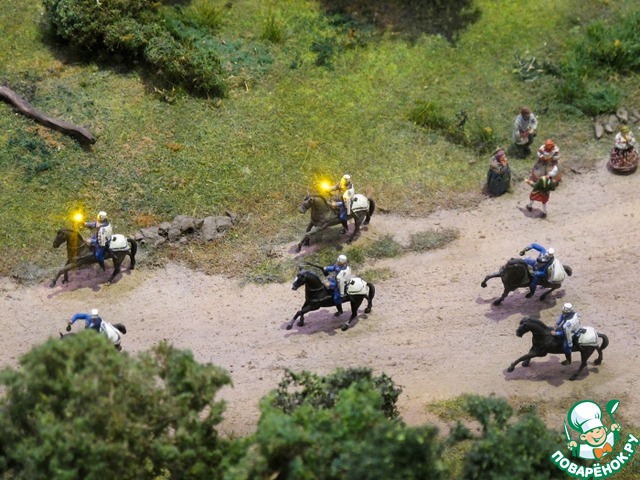 А это сцена охоты. Во все времена российского царского дома, охота была одним из любимейших развлечений государей. На фото показана сцена выезда императрицы Елизаветы на зайцев со сворой гончих.