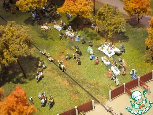 После охоты прямо на свежем воздухе устраивались угощение и танцы. Если погода не позволяла ехали в ближайший дворец.