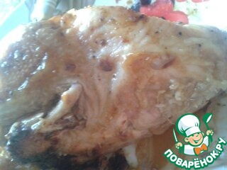 Уж не знаю как так получилось что сфотографировала только кусочек курочки,но я рада что есть хотя бы он.Стоит этот рецепт попробовать любителям имбиря.Мне рецепт пришелся по вкусу,имбиря положило видимо в два раза больше чем требовалось.Но для меня это был только плюс.Курочка получилась красивая,сочная,с приятным сладко-острым вкусом.Самый малой не оценил,не смог кушать,видимо необычный вкус его смутил.Но мы с мужем и старшими детьми съели с удовольствием.Еще мне понравилось образовавшийся сок кушать хлебушком,ну очень вкусно...