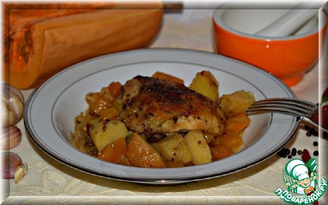 Очень сочная,нежная курочка!А картошка,а тыква!Сказка просто!В следующий раз тыквы положу больше,очень понравилась!