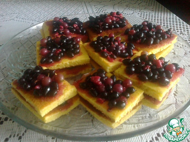 К летнему вечернему чаепитию испекли бисквит. Разнооборазили смородиновой начинкой.