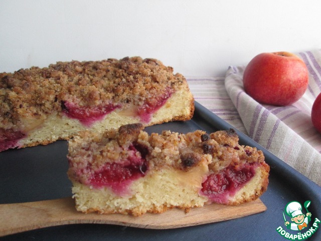 меньшего размера, поэтому штрейзеля "насыпала" от души! Пирог получился