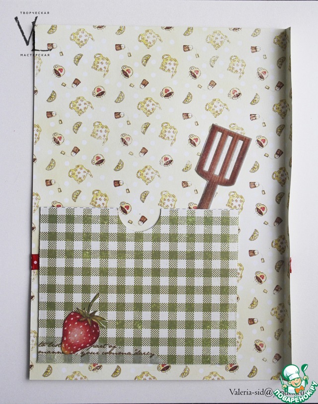на его спинке кармашек для листиков с рецептами