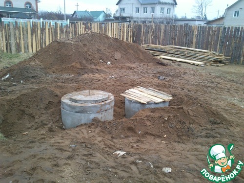 сделали монтаж канализации. занимался муж..когда я в живую увидела эту ямищу(а их две... эти 10 колец -8 больших,2 малых, я даже испугалась-ну куда столько??? но мж уверен. НАДО! что ж, пусть будет больше...