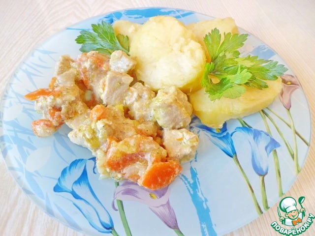 "Немецкий гуляш из свинины с овощами и жареным картофелем"