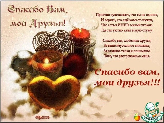 , близкие и далекие, давние и новые друзья мои и подружки! Благодарю вас за теплоту и доброту, за внимание и понимание, за все слова поддержки, за пожелания, похвалу, советы...