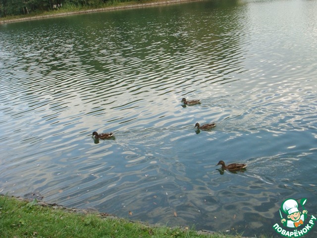 А вот и обитатели парка.Уточки,как красиво плывут!