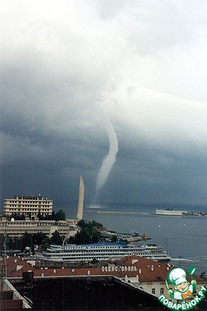 И даже смерч, самый настоящий, случается запечатлеть над Севастопольской бухтой! (Август 2002)