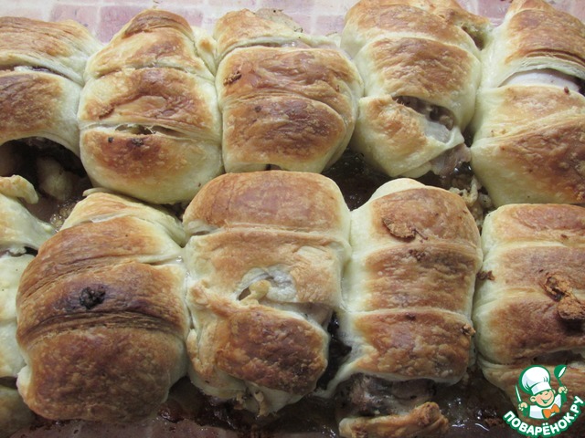 Конечно, мне далеко до оригинала, но все равно получилось необычно красиво и вкусно. Выпекая, сбрызнула один раз водой и накрыла сверху другим глубоким противнем. На выпекание ушло 25 минут. Буду пробовать еще, чтобы уж совсем как у Даши получилось!