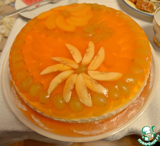 За основу брала рецепт Кати kotenochkin Творожно-желейный торт с фруктами.