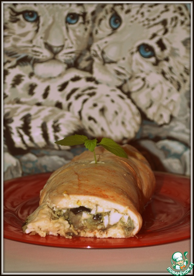 Очень вкусно, очень нежно и сочно. В начинку я помимо лука добавила грибы и рубленое яйцо, и зелень использовала подручную, свежую: базилик, шпинат и кориандр. Вышло очень интересно и вкусно. Вообще, процесс (опять же, помимо разделки) любопытный. И в рулет закручивается удобно. Так что, пользуйтесь! Автору спасибо ещё раз!