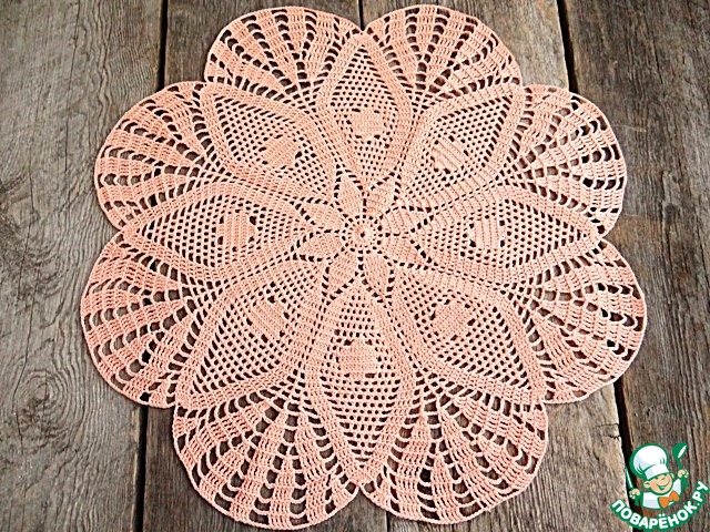 Аллочка знает, как мне нравятся кружевные салфетки. Эти салфетки она связала сама, что для меня особенно дорого! Легкие, воздушные и изысканные салфетки! Убедитесь сами! Обязательно буду применять эти салфетки для фотографий блюд. Первая салфетка персикового цвета с очень красивым узором.