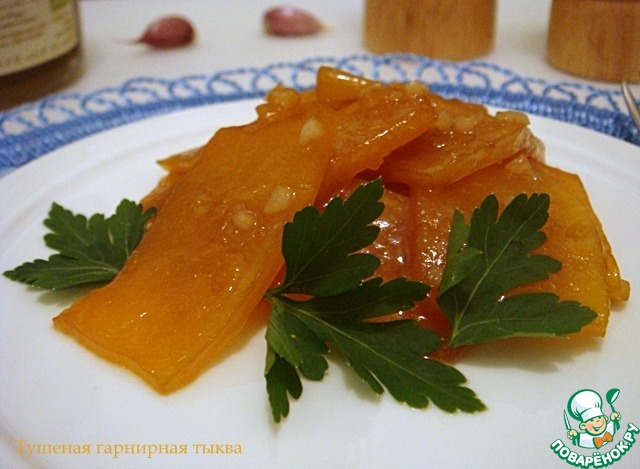 Тушеная гарнирная тыква - необыкновенно вкусные, яркие ломтики! Вполне самодостаточное блюдо и очень удачный гарнир.