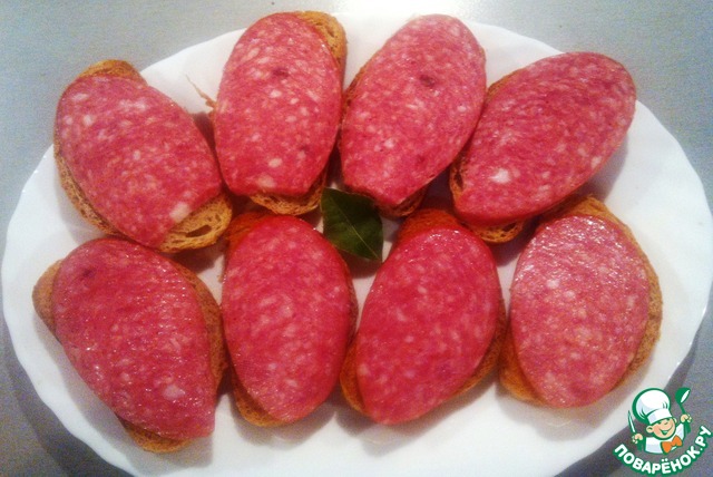 На завтрак у нас сегодня были бутеры с вкуснющей колбаской из Краснодара. Маша, как ты и написала колбаса просто супер!!! С таким то батонищем присядем на колбасную диету)))