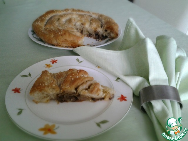 "Грибной пирог-спираль " https://www.povarenok.ru/recipes/show/93977 от поваренка IrikF. Что могу сказать? Вкусно, просто, декоративно. Кто еще не готовтл этот пиог, очень рекомендую.