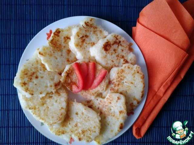 "Рисовые шарики" https://www.povarenok.ru/recipes/show/47215 по рецепту поваренка xsenia. С этим рецептом мне не повезло. Рис упорно не хотел склеиваться и держать форму, разваливался и всячески капризничал. Пришлось забить мукой и манкой. В результате получились вкусные сырно-рисовые оладьи, слегка отдающие мукой. А хотелось шариков...