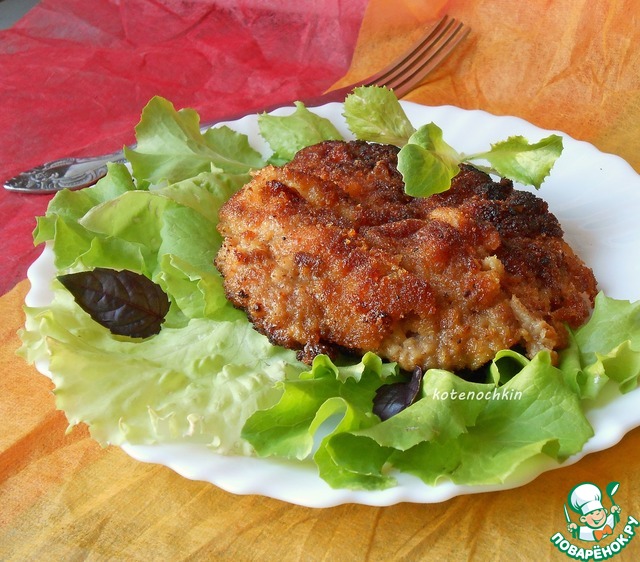 Косточку вырезала всю, т.к. аккуратно отрубить ее у меня не получилось. Очень вкусная отбивная!