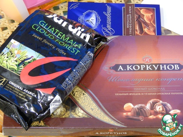 А вот и сладкие подарочки: кофе зерновой свежайший, очень вкусные конфеты и шоколад, все, как я люблю!
