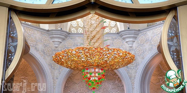 На полу молельного зала лежит самый большой на свете персидский ковер. Конечно же, ручной работы. Его площадь – 5627 кв. м, а вес – 47 тонн! Над его созданием почти два года трудились около 1200 иранских мастериц, а чтобы доставить чудо-ковер в Абу-Даби потребовалось два самолета. Неудивительно, что стоимость ковра достигла цифры в 6 млн. долларов.