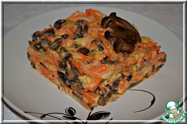 Салат видоизменила под себя:курица вместо свинины,свои консервированные опята вместо шампиньонов и заправка из йогурта.Думаю,вкус не очень пострадал.Салат получился вкусный,насыщенный,яркий.Нам понравился!