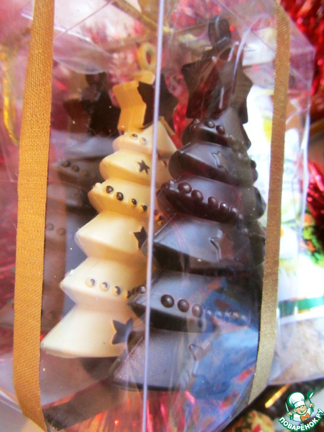 А это очень красивые (и ооочень аппетитные) шоколадные ёлочки! Одна из темного шоколада, вторая из молочного, а третья из белого. Убраны до Нового года, повесим на ёлку, на шоколадных ёлочках есть даже "ушки" для подвешивания.
