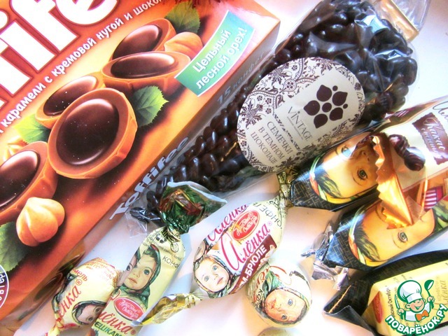Вот такие конфетки были внутри коробочки и не только эти, остальные уже умыкнула Карина. А в маленьком пакетике... - это, вообще, бомба! Семечки в шоколаде!!! Очень вкусно! Никогда не пробовала)