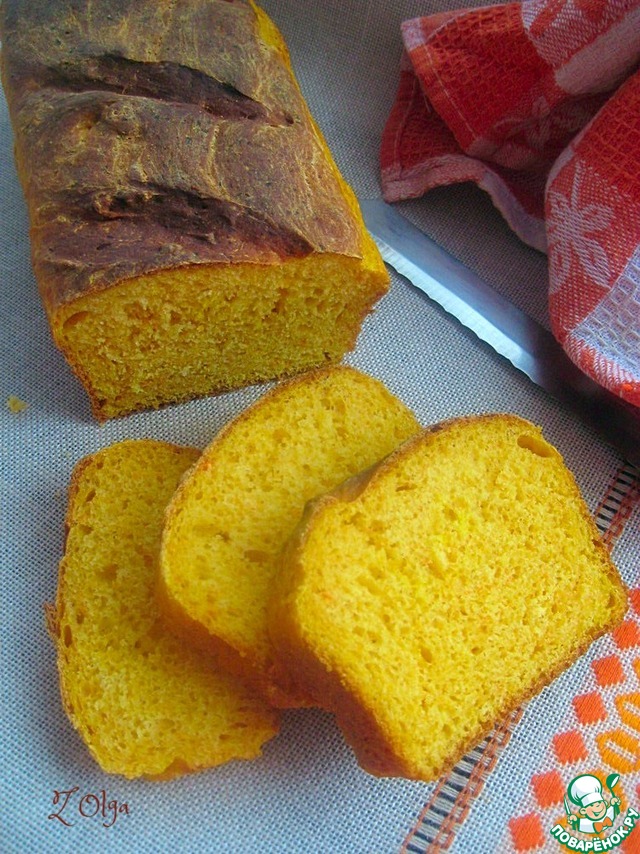 «Тыквенный хлеб» https://www.povarenok.ru/recipes/show/117455/ по рецепту Наташи гурман1410! Делала всё строго по рецепту, хотя на начальном этапе были сомнения, тесто действительно было липким и первый подъём проходил трудно, но потом пошло всё как по маслу и я очень довольна результатом! Нежный, мягкий, яркий, с легким тыквенным послевкусием!
