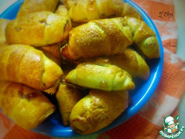 «Постные рогалики» https://www.povarenok.ru/recipes/show/55597/ по рецепту поваренка anna74. Очень хороший, экономный рецепт. Тесто послушное в работе, получается хрустящим и вкусным! Я свои сверху всё-таки смазала яйцом и чуть присыпала сахаром))).