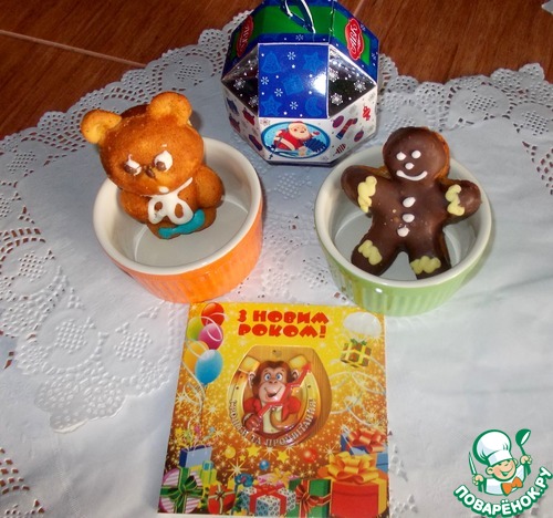 До самого открытия долгожданной коробочки,я не знала что внутри...и тут сюрприз!!! Два рамекина,о которых я давно мечтала! Однажды упомянув в рецепте,что давно хочу такие,Лада запомнила и подарила мне их! Еще замечательную открыточку с магнитов в виде обезьяны,символа года,вкуснейшего мишку и снеговика и коробку конфет в виде шарика на елку. УРА!!! Праздник удался!!!