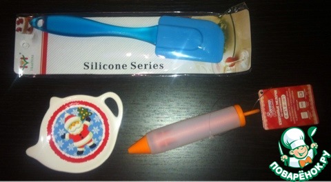 Еще у меня появились новые прибамбасы для кухни))) силиконовая лопатка, подставка под чайные пакетики и силиконовый кондитерский шприц