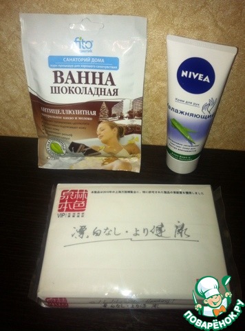 Позаботилась Анечка и о красоте))) От нее я, вернее мы (т.к. почти все утянула дочка))) получили замечательный крем для рук, сейчас зимой он очень актуален, матирующие, экологически чистые салфетки для лица, и для принятия ванны «Шоколадная антицеллюлитная ванна»