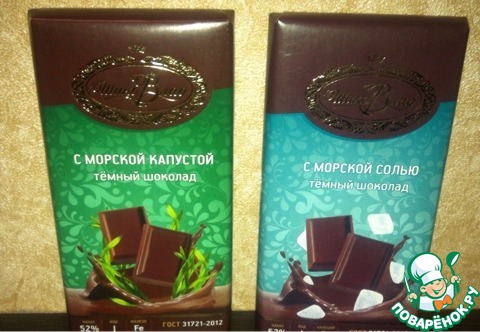 Ну и конечно десерт)))) Шоколад с морской солью и с морской капустой. Анечка, тебе кто подсказал, что шоколад с солью один из моих любимых))) по моему у нас на поваренке сплошные ясновидящие))) а с морской капустой я ни разу не видела и не пробовала. Вернее сегодня уже попробовала))) вот только что))) Обе шоколадки по кусочку слопала, ОЧЕНЬ вкусные!!!
